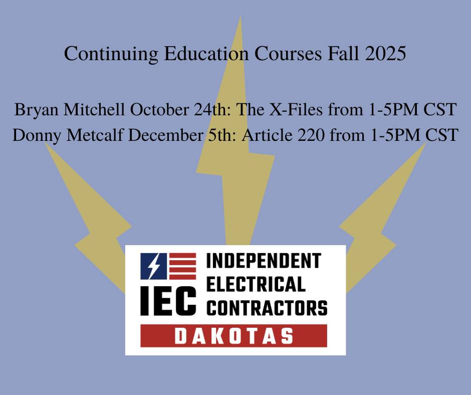 It’s time to start thinking about Continuing Education. IEC Dakotas offers live 4 hour NEC Code Classes that are valid for license holders in 7 states.